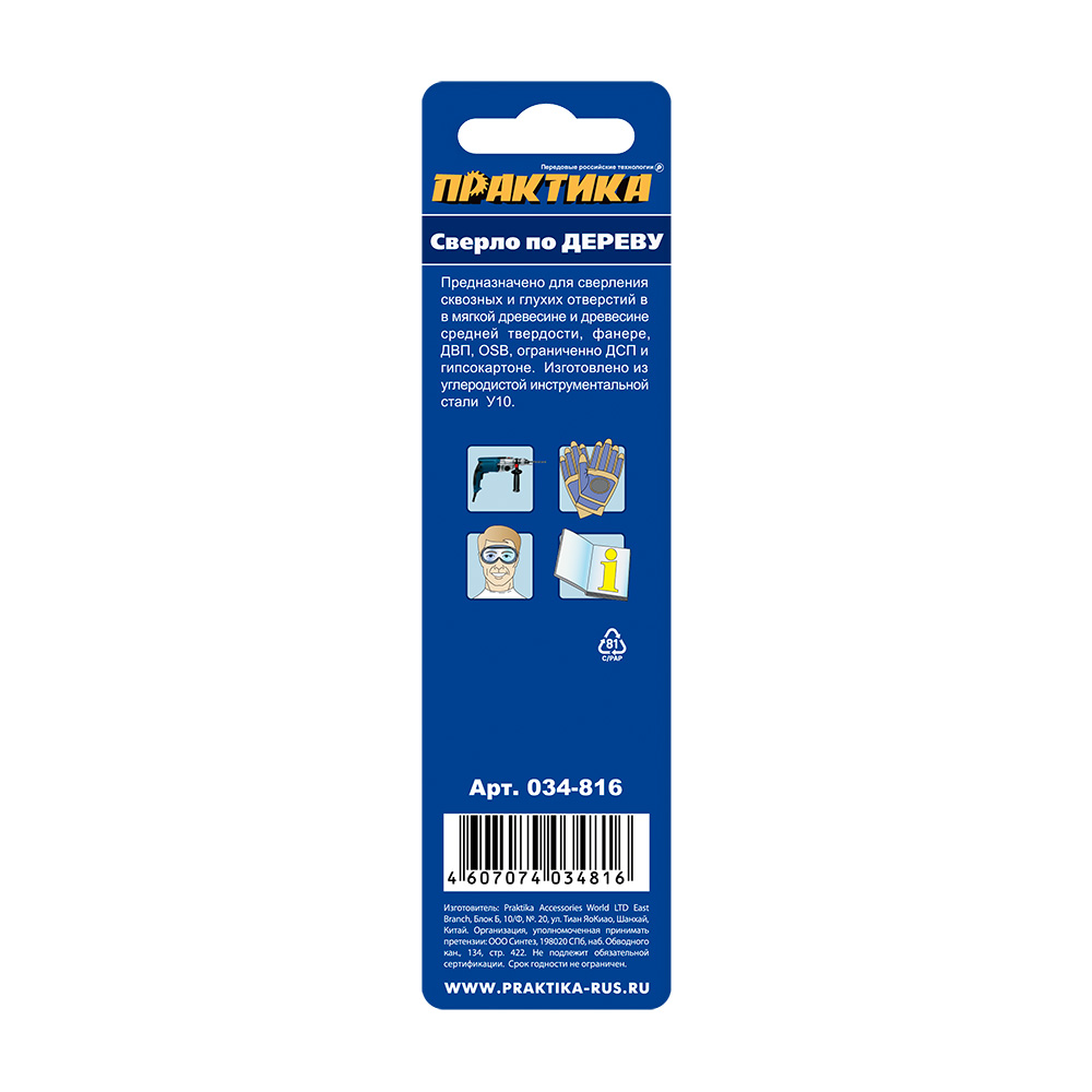 Сверло по дереву ПРАКТИКА 5 х 86 мм, серия Мастер (1шт.) блистер (034-816) - цена, фото, технические характеристики