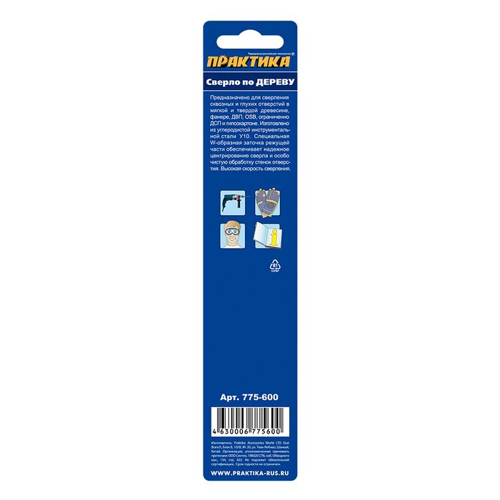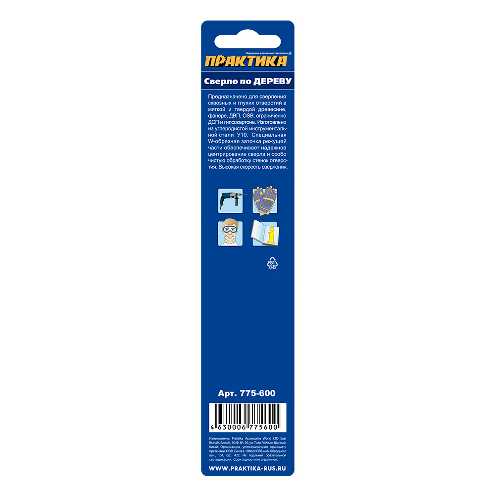Сверло по дереву ПРАКТИКА 8 х 110 мм, W-заточка, (1шт.) блистер, серия Профи (775-600) - цена, фото, технические характеристики
