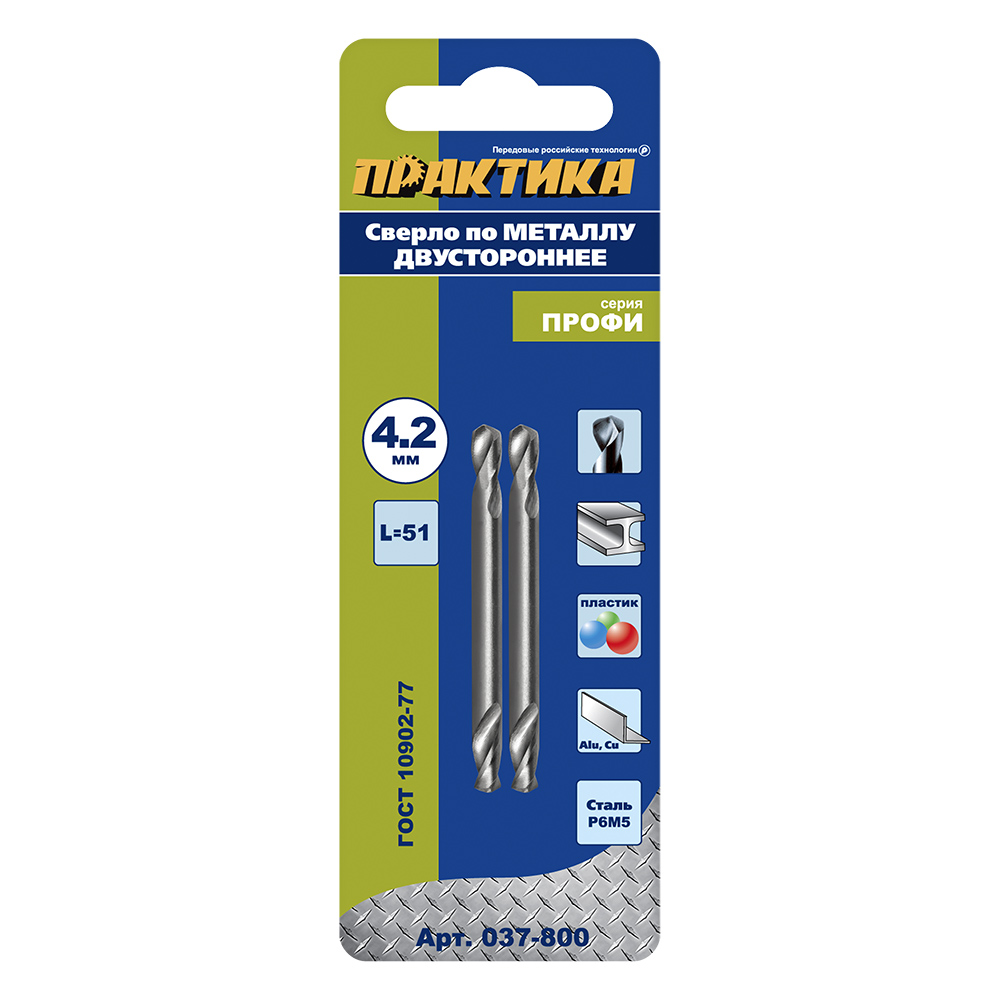 Сверло по металлу двустороннее ПРАКТИКА Р6М5 4,2 х 51 мм (2шт.) блистер (037-800) - цена, фото, технические характеристики