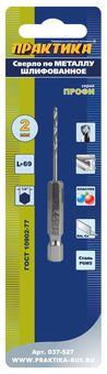 Сверло по металлу HEX 1/4" ПРАКТИКА Р6М5 2,0 х 69 мм (1шт.) блистер (037-527) - цена, фото, технические характеристики