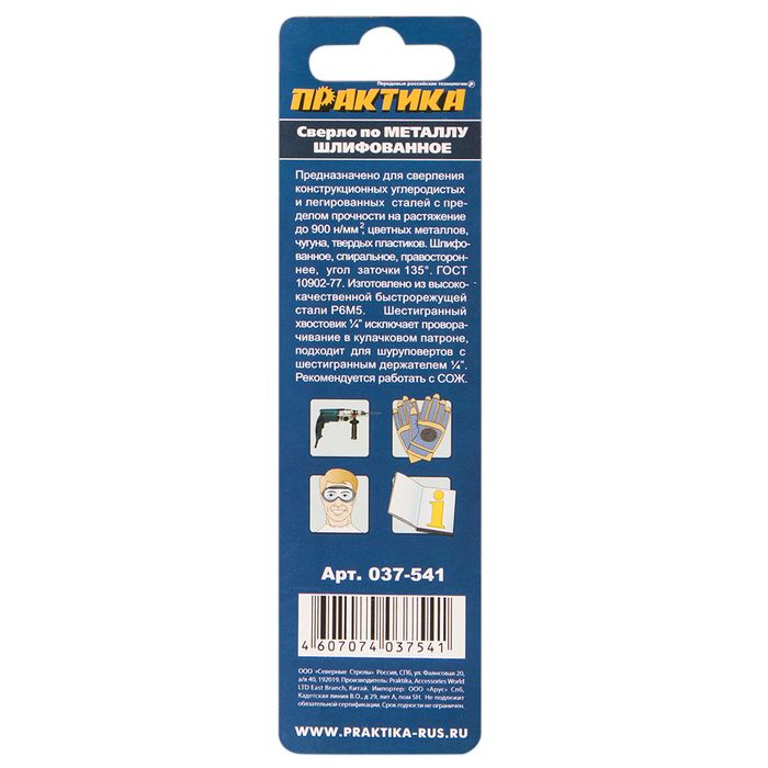 Сверло по металлу HEX 1/4" ПРАКТИКА Р6М5 3,0 х 81 мм (1шт.) блистер (037-541) - цена, фото, технические характеристики
