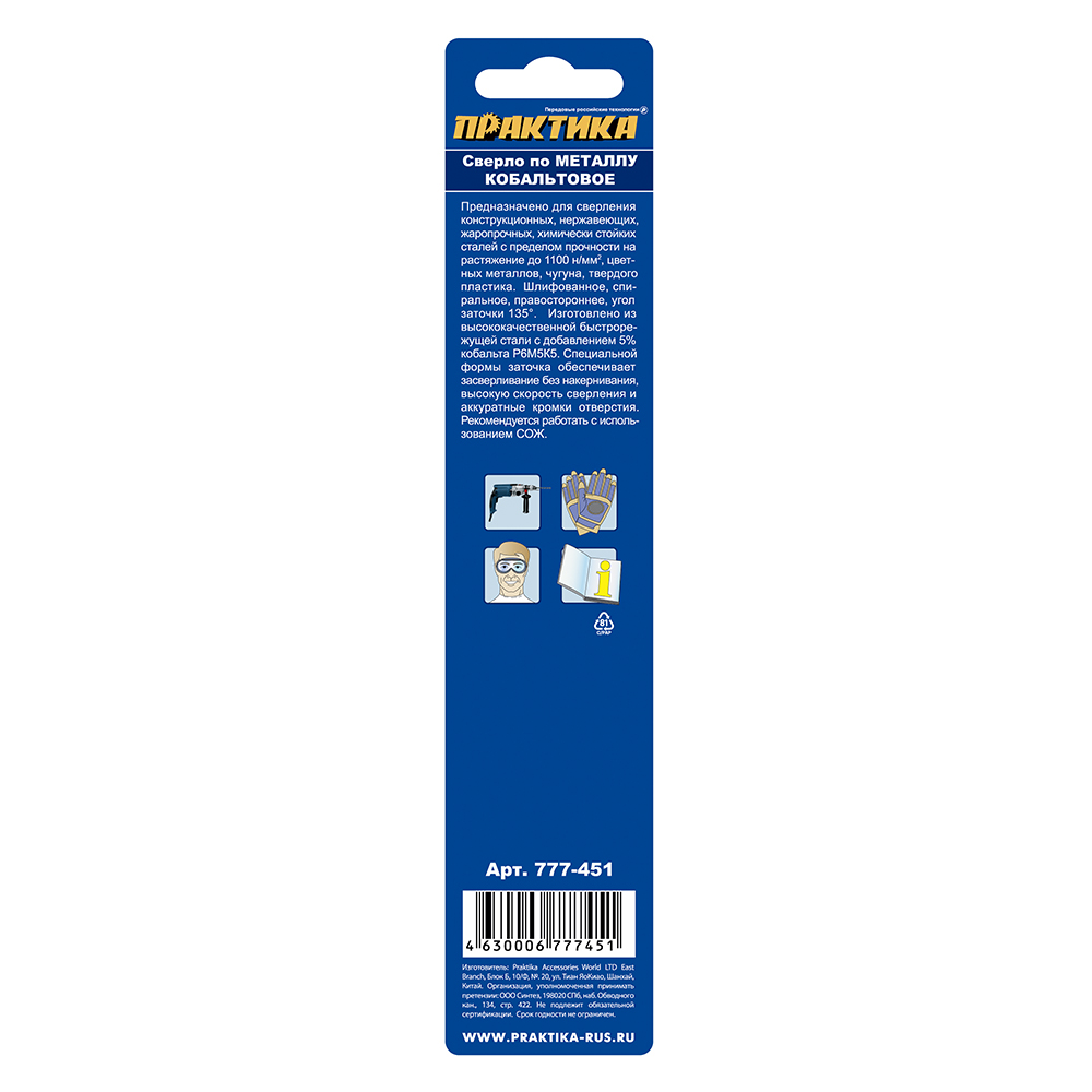 Сверло по металлу кобальтовое ПРАКТИКА 11,0 х 142 мм Р6М5К5, (1шт.) блистер (777-451) Р6М5К5, (1шт.) блистер