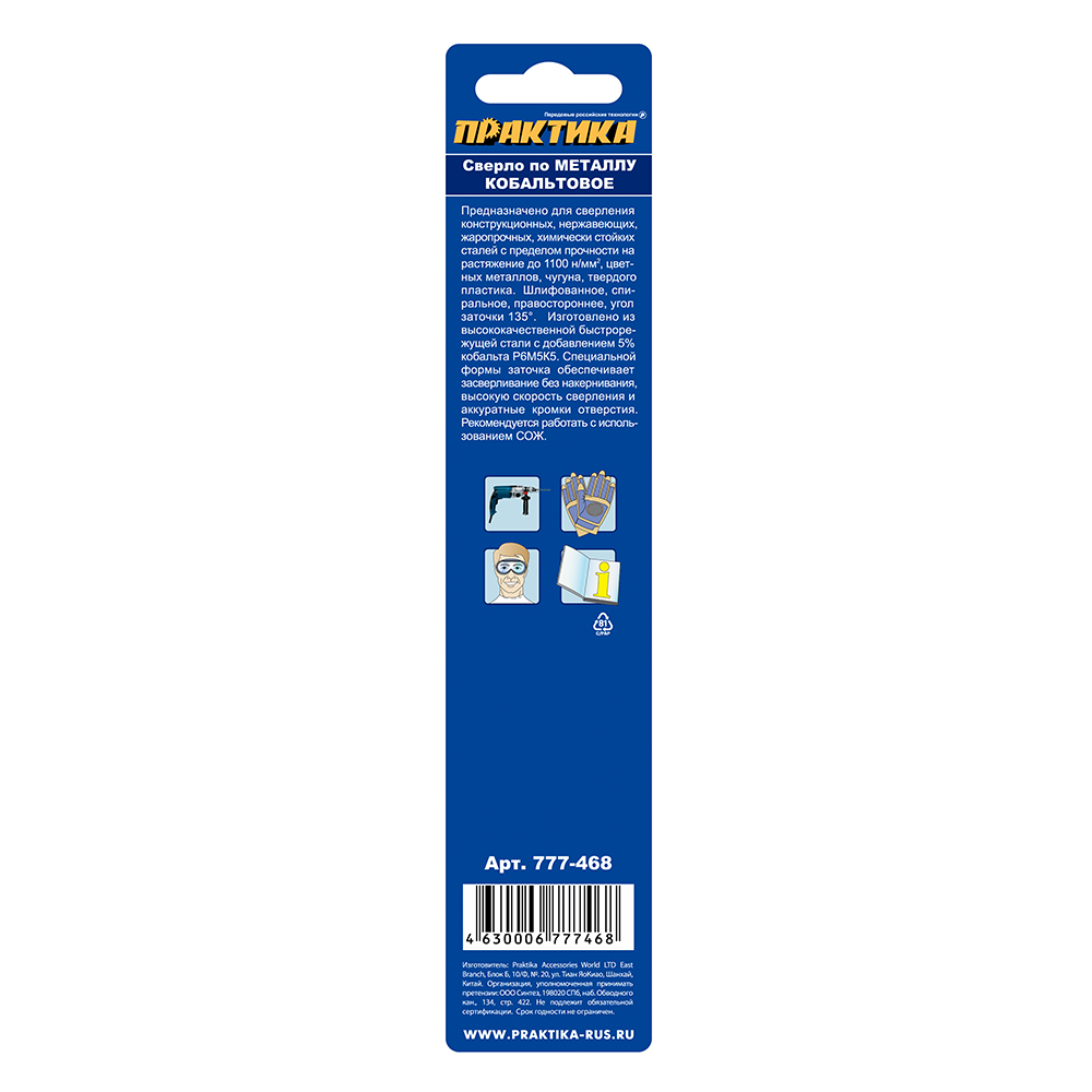 Сверло по металлу кобальтовое ПРАКТИКА 12,0 х 151 мм Р6М5К5, (1шт.) блистер (777-468) Р6М5К5, (1шт.) блистер