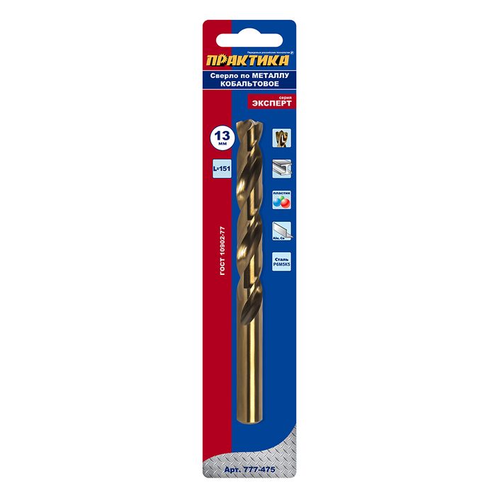 Сверло по металлу кобальтовое ПРАКТИКА   13,0 х 151 мм Р6М5К5, (1шт.) блистер (777-475)