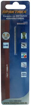 Сверло по металлу кобальтовое ПРАКТИКА 1,5 х 40 мм Р6М5К5, (1шт.) блистер (033-383) - цена, фото, технические характеристики