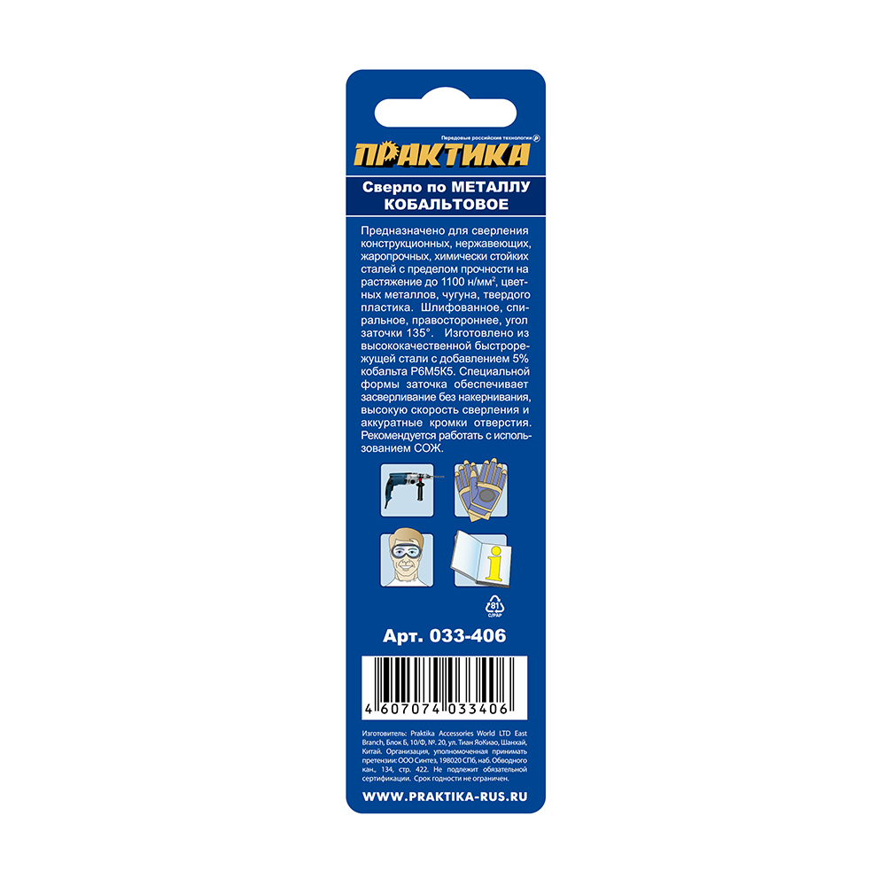 Сверло по металлу кобальтовое ПРАКТИКА 2,5 х 57 мм Р6М5К5, (1шт.) блистер (033-406) - цена, фото, технические характеристики