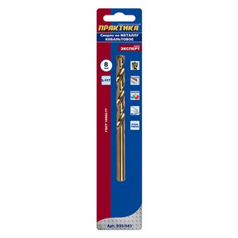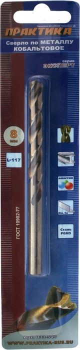 Сверло по металлу кобальтовое ПРАКТИКА 8,0 х 117 мм Р6М5К5, (1шт.) блистер (033-543) - цена, фото, технические характеристики