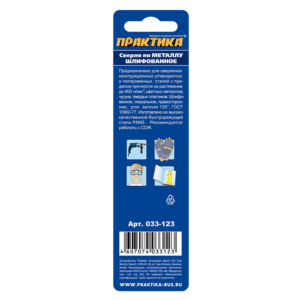 Сверло по металлу ПРАКТИКА Р6М5 1,0 х 34 мм (2шт.) блистер (033-123) - цена, фото, технические характеристики
