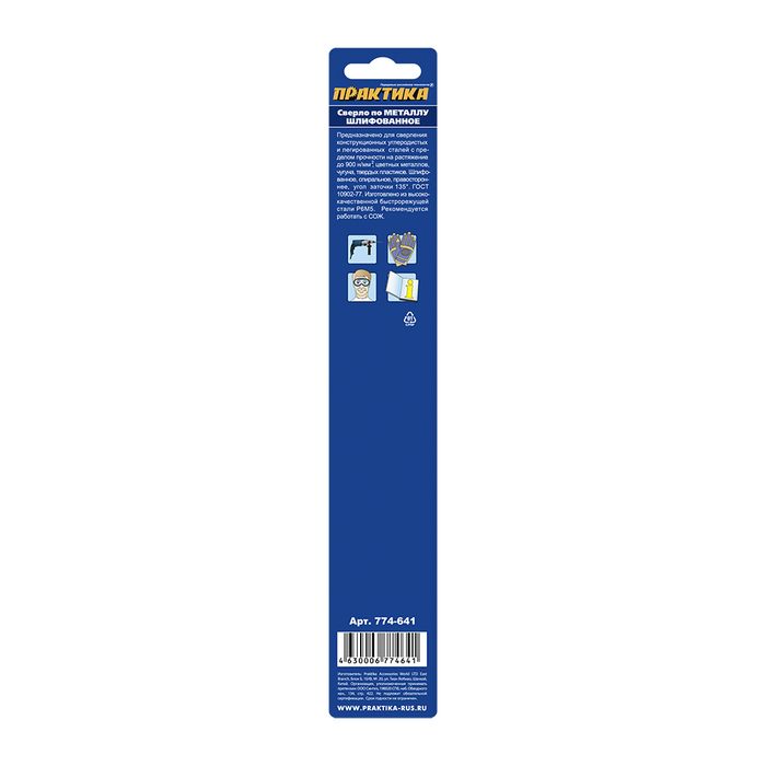 Сверло по металлу ПРАКТИКА Р6М5 15,0 х 169 мм, хвостовик 13 мм, (1шт.) блистер (774-641) - цена, фото, технические характеристики
