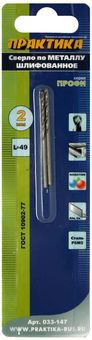 Сверло по металлу ПРАКТИКА Р6М5 2,0 х 49 мм (2шт.) блистер (033-147)