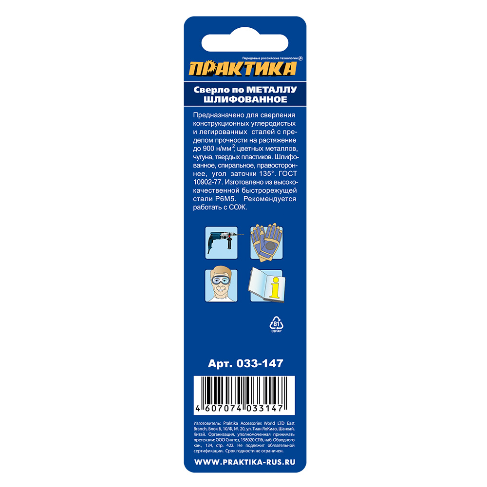 Сверло по металлу ПРАКТИКА Р6М5 2,0 х 49 мм (2шт.) блистер (033-147) - цена, фото, технические характеристики