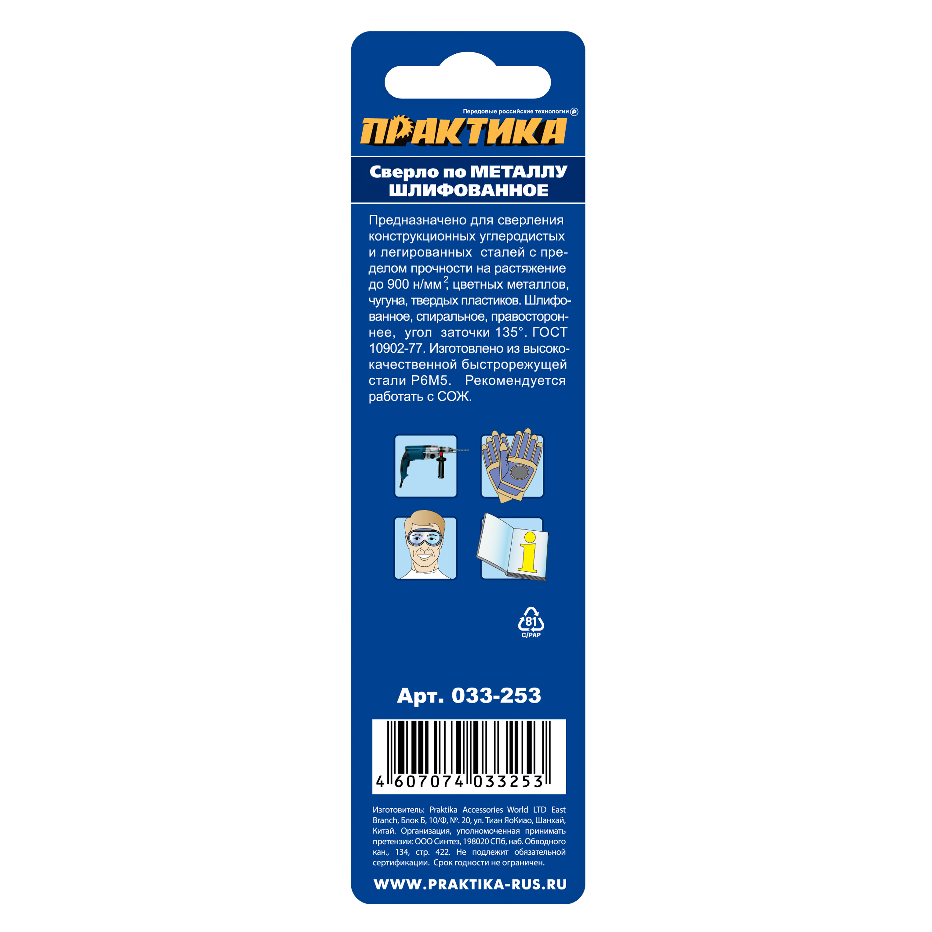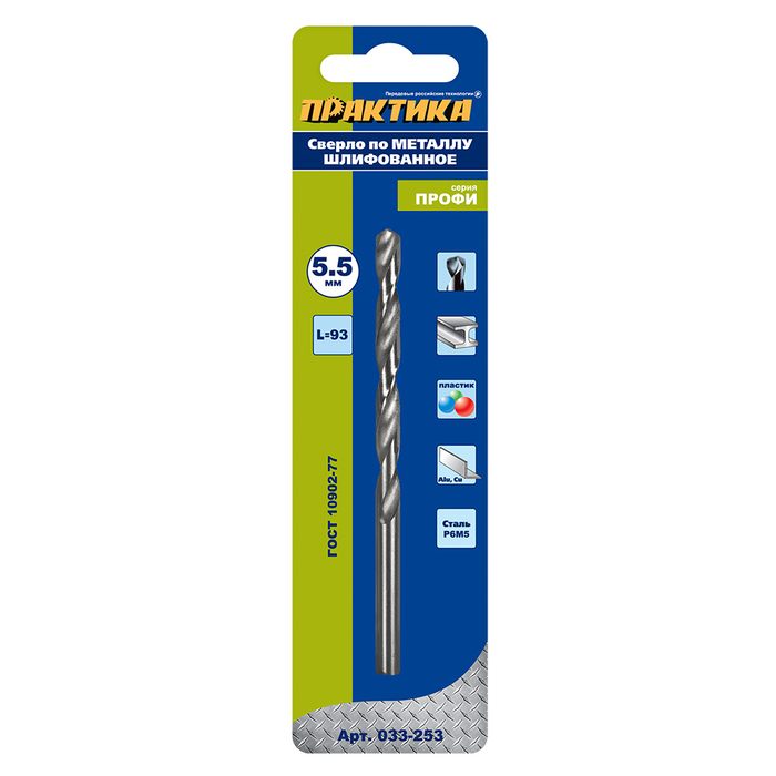 Сверло по металлу ПРАКТИКА Р6М5 5,5 х 93 мм (1шт.) блистер (033-253) - цена, фото, технические характеристики