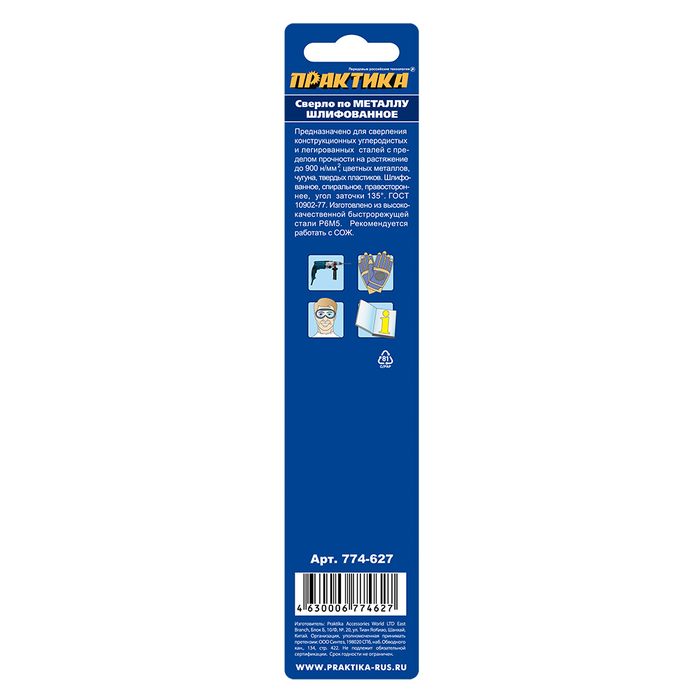 Сверло по металлу ПРАКТИКА Р6М5 7,5 х 109 мм (1шт.) блистер (774-627)