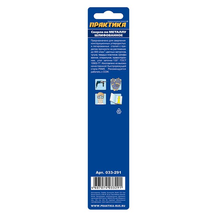 Сверло по металлу ПРАКТИКА Р6М5 8,0 х 117 мм (1шт.) блистер (033-291) - цена, фото, технические характеристики