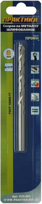 Сверло по металлу ПРАКТИКА Р6М5 8,0 х 117 мм (1шт.) блистер (033-291)