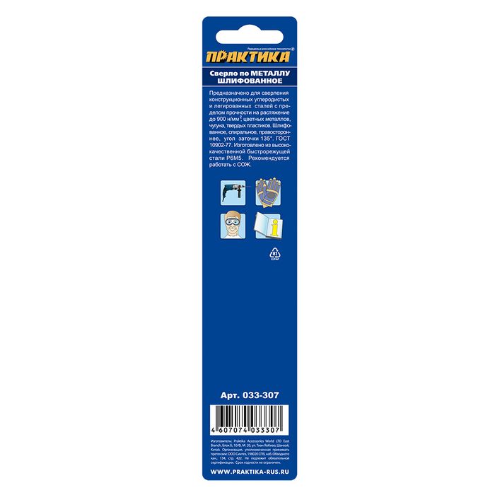 Сверло по металлу ПРАКТИКА Р6М5 8,5 х 117 мм (1шт.) блистер (033-307) - цена, фото, технические характеристики