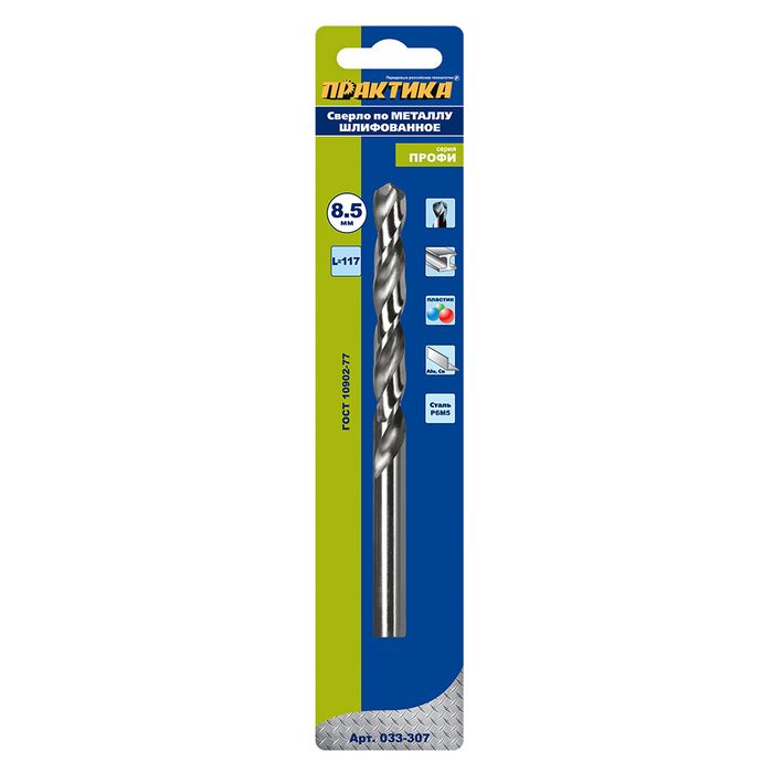 Сверло по металлу ПРАКТИКА Р6М5 8,5 х 117 мм (1шт.) блистер (033-307)