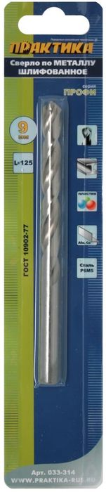 Сверло по металлу ПРАКТИКА Р6М5 9,0 х 125 мм (1шт.) блистер (033-314)