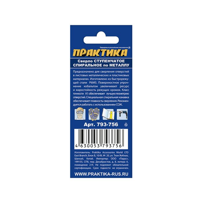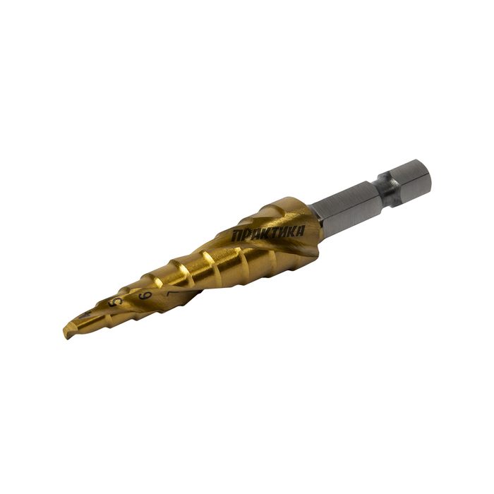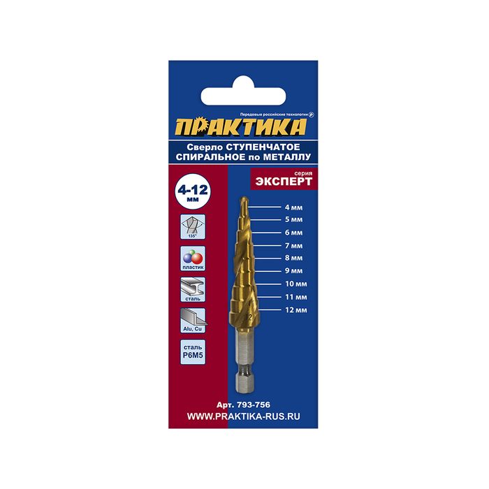 Сверло по металлу ступенчатое спиральное ПРАКТИКА 4-12мм, шаг 1мм, хвост.1/4", ЭКСПЕРТ - цена, фото, технические характеристики