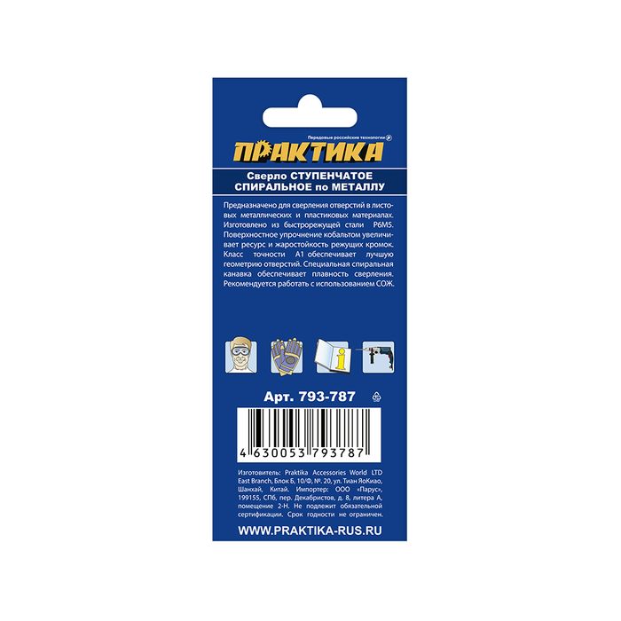 Сверло по металлу ступенчатое спиральное ПРАКТИКА 9-36мм, шаг 3мм, 3-х гран.хвост.10мм, ЭКСПЕРТ - цена, фото, технические характеристики