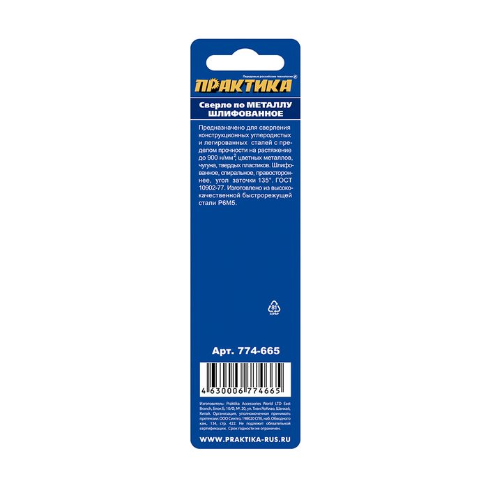 Сверло по металлу удлиненное ПРАКТИКА Р6М5 2,0 х 85 мм (1шт.) блистер (774-665) - цена, фото, технические характеристики