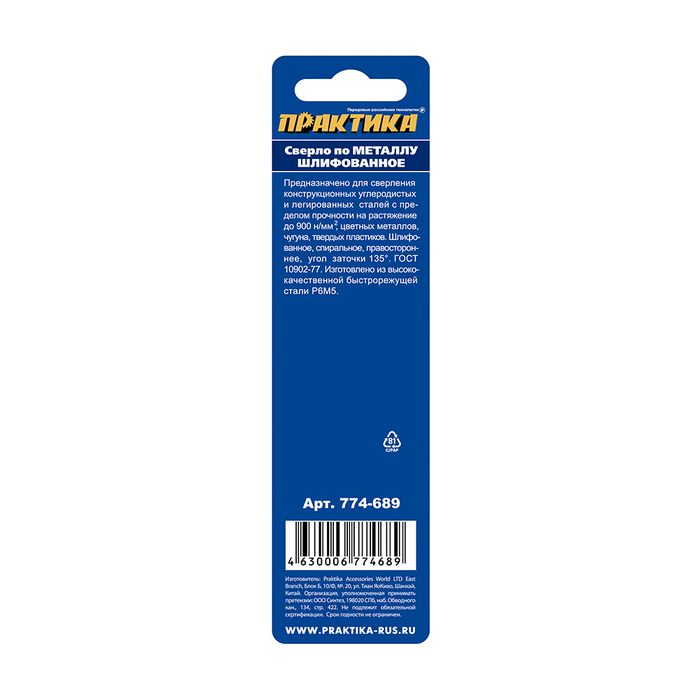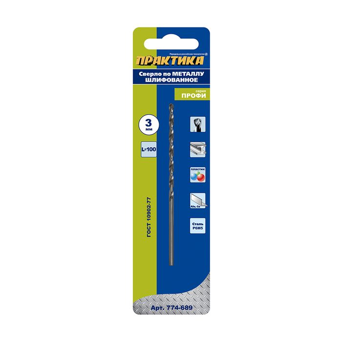 Сверло по металлу удлиненное ПРАКТИКА Р6М5 3,0 х 100 мм (1шт.) блистер (774-689) - цена, фото, технические характеристики