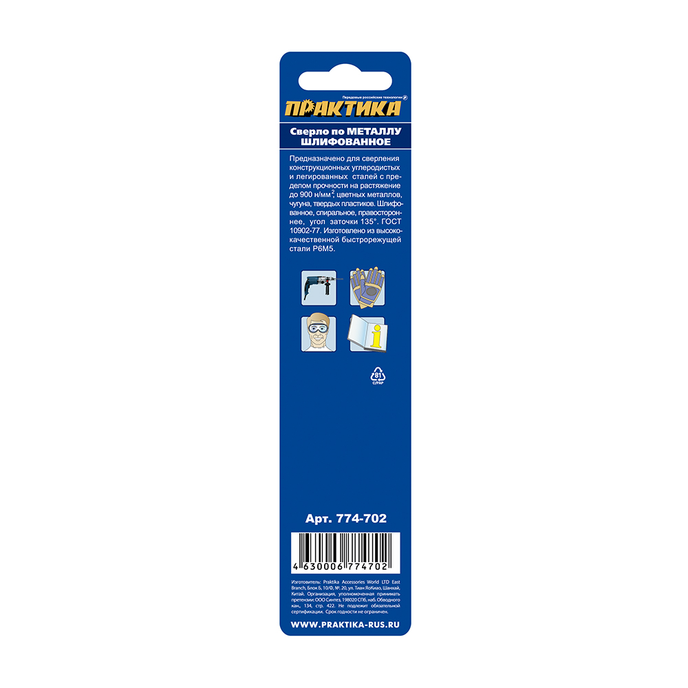 Сверло по металлу удлиненное ПРАКТИКА Р6М5 3,3 х 106 мм (1шт.) блистер (774-702) - цена, фото, технические характеристики