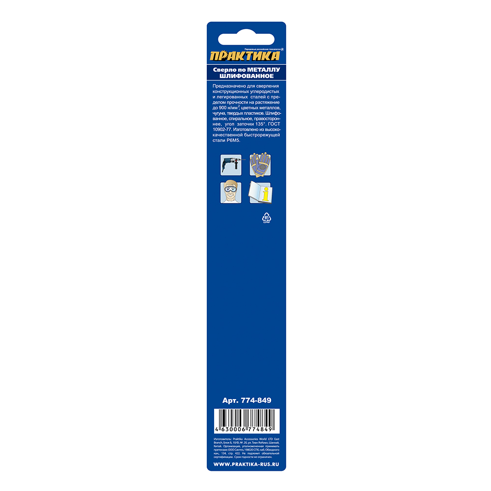 Сверло по металлу удлиненное ПРАКТИКА Р6М5 9.0 х 175 мм (1шт.) блистер (774-849) - цена, фото, технические характеристики