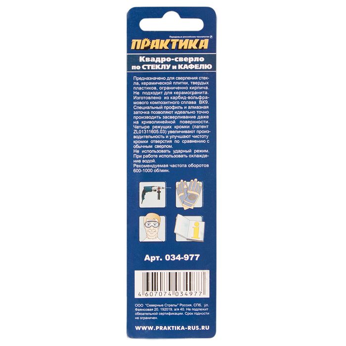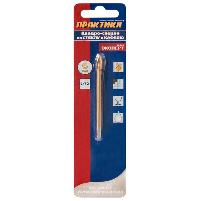 Сверло по стеклу и кафелю ПРАКТИКА "Эксперт" Квадро 6 х 72 мм (1шт) блистер (034-977) - цена, фото, технические характеристики