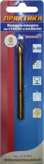Сверло по стеклу и кафелю ПРАКТИКА "Эксперт" Квадро 8 х 80 мм (1шт.) блистер (034-984) (034-984)