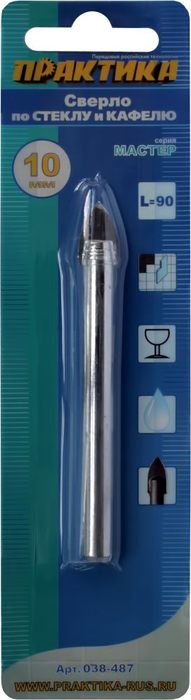Сверло по стеклу и кафелю ПРАКТИКА "Мастер" 10 х 90 мм (1шт.) блистер (038-487) - цена, фото, технические характеристики