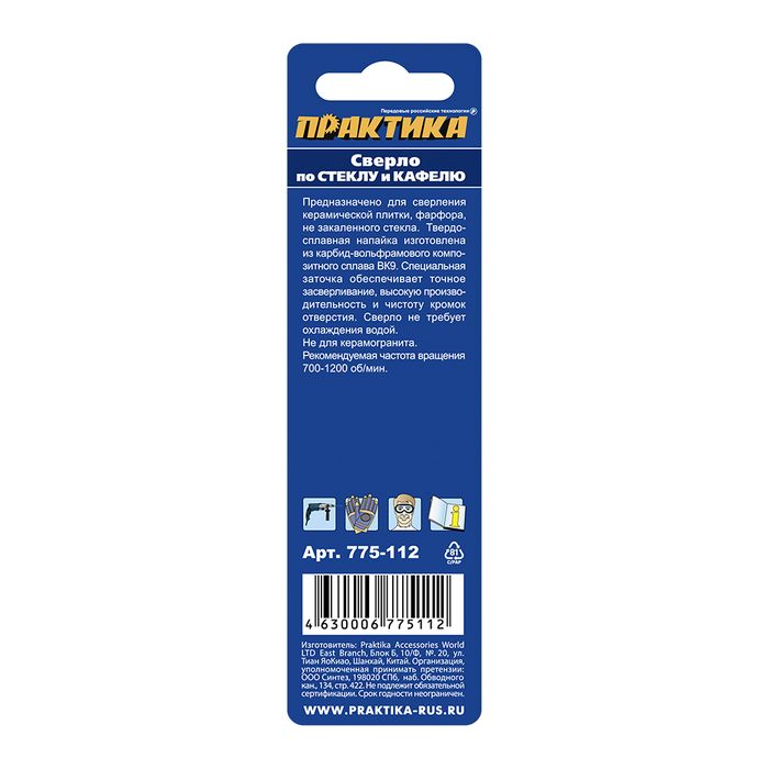 Сверло по стеклу и кафелю ПРАКТИКА "Профи" V-тип 10 х 96 мм (1шт.) блистер - цена, фото, технические характеристики