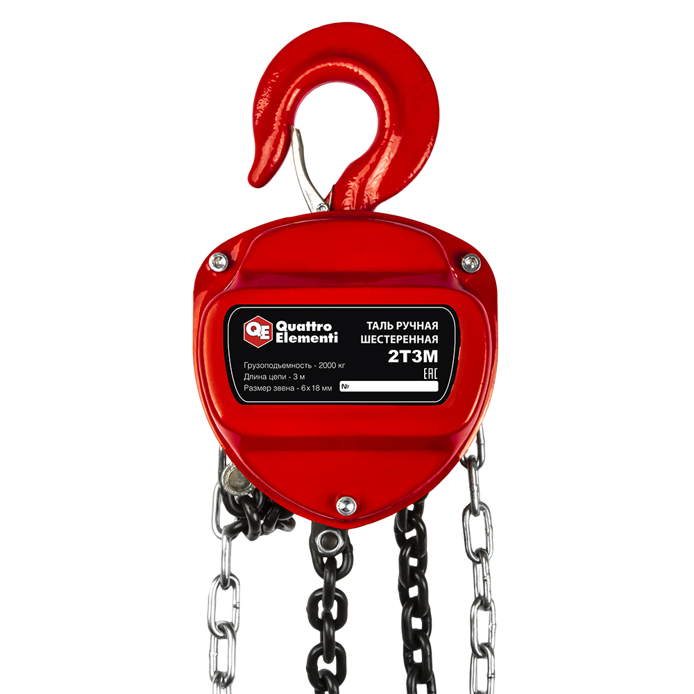 Таль ручная QUATTRO ELEMENTI 2T3M (2000 кг, цепь 3 м) (799-963) - цена, фото, технические характеристики