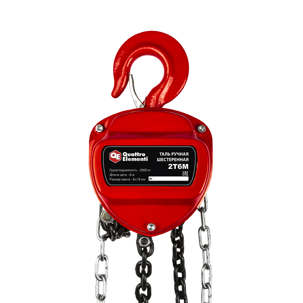 Таль ручная QUATTRO ELEMENTI 2T6M (2000 кг, цепь 6 м) (799-970) - цена, фото, технические характеристики