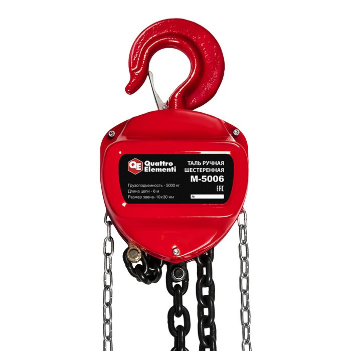 Таль ручная QUATTRO ELEMENTI M-5006 (5000 кг, цепь 6 м) (922-951) - цена, фото, технические характеристики