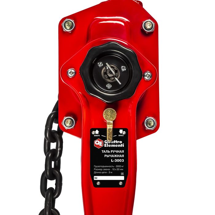 Таль рычажная QUATTRO ELEMENTI L-3003 (3000 кг, цепь 3 м) (923-040) - цена, фото, технические характеристики
