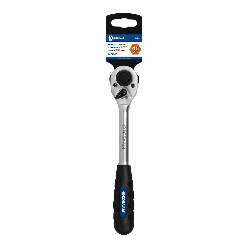 Трещоточная рукоятка КОБАЛЬТ 1/2" 250 мм, 45 зубьев, флажковый переключатель, CR-V, подвес (642-401)