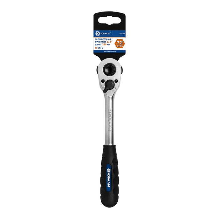 Трещоточная рукоятка КОБАЛЬТ 1/2" 250 мм, 72 зуба, флажковый переключатель, CR-V, подвес (642-395) - цена, фото, технические характеристики