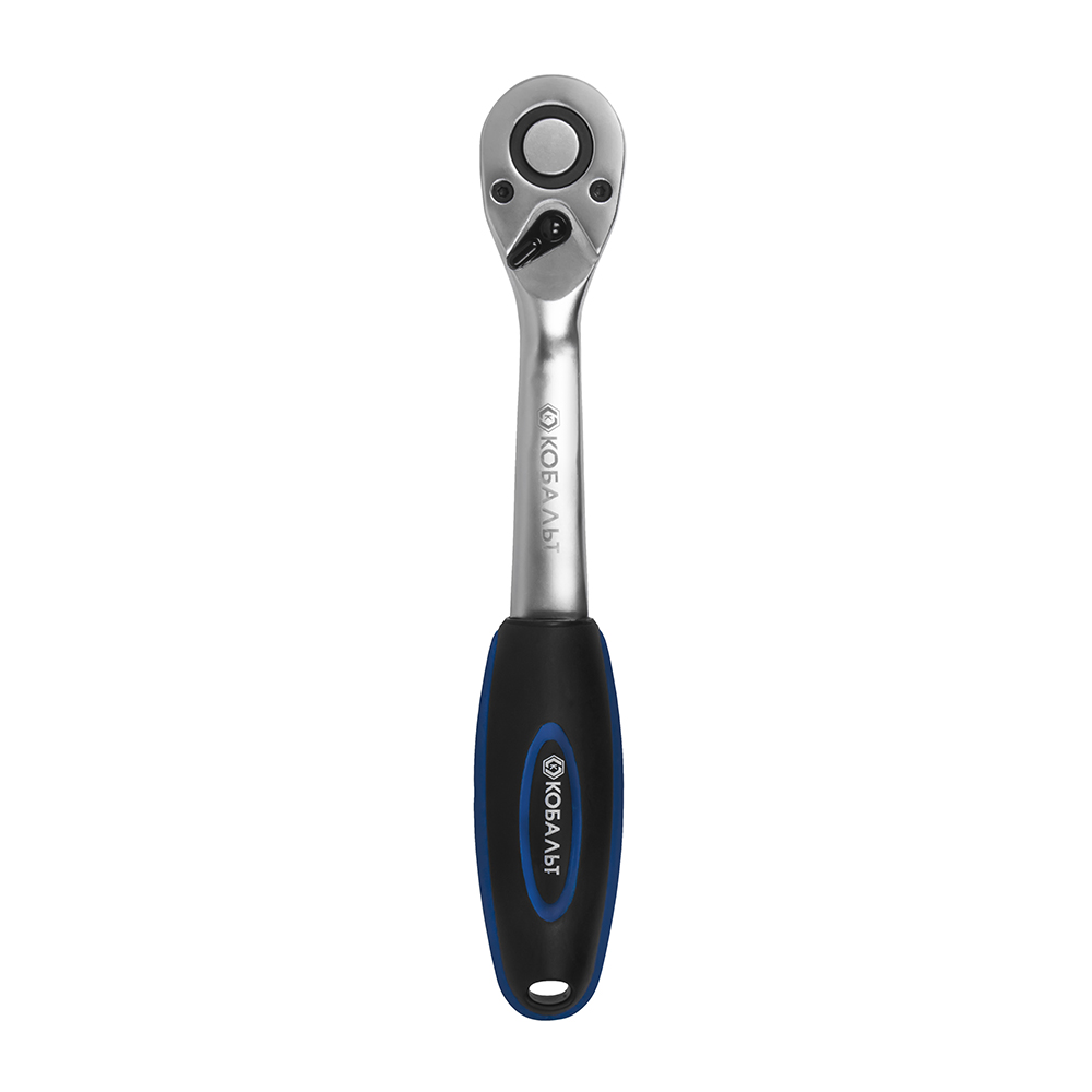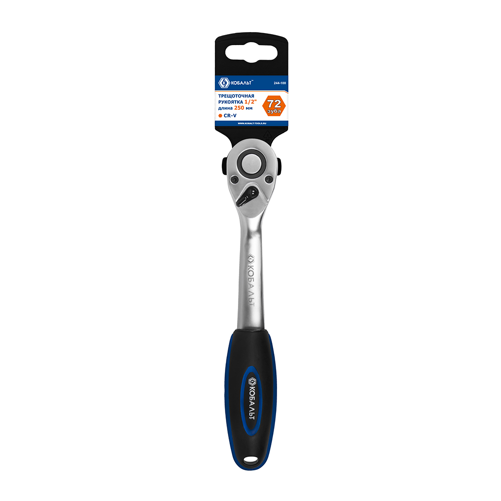 Трещоточная рукоятка КОБАЛЬТ 1/2" 250 мм, изогнутая, 72 зуба, флажковый переключатель, CR-V, подвес (244-100) - цена, фото, технические характеристики
