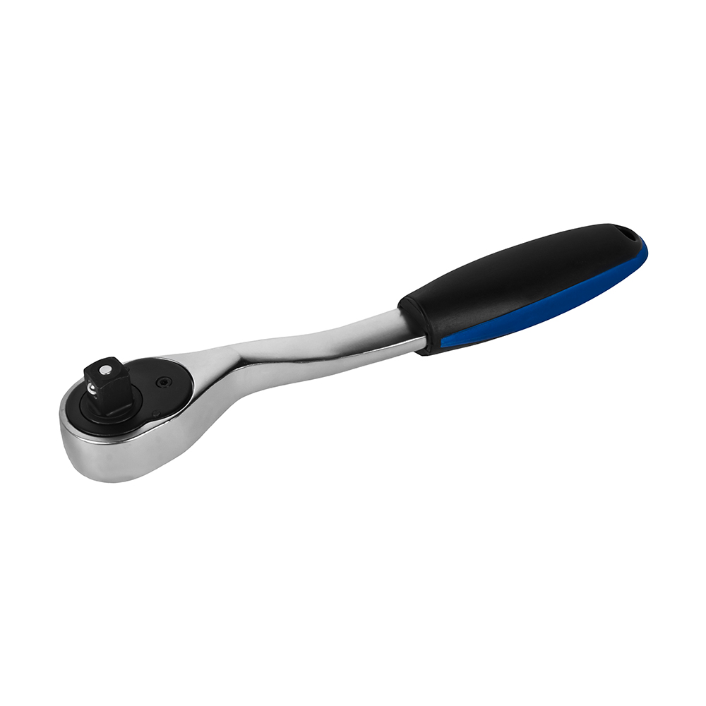 Трещоточная рукоятка КОБАЛЬТ 1/2" 250 мм, изогнутая, 72 зуба, флажковый переключатель, CR-V, подвес (244-100)