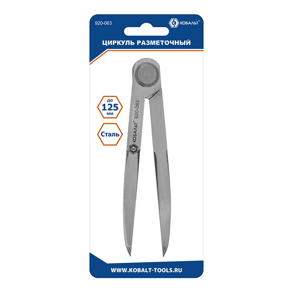 Циркуль разметочный КОБАЛЬТ , ширина раскрытия до 125 мм, разметка по дерев/коже/пласт/мягк.мет.,углер. сталь, блистер (920-063) - цена, фото, технические характеристики