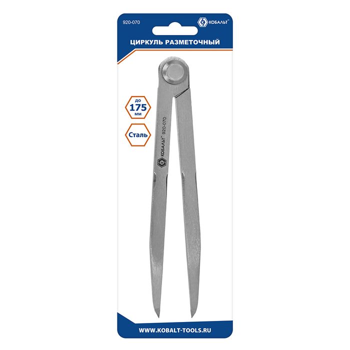 Циркуль разметочный КОБАЛЬТ , ширина раскрытия до 175 мм, разметка по дерев/коже/пласт/мягк.мет.,углер. сталь, блистер (920-070) - цена, фото, технические характеристики
