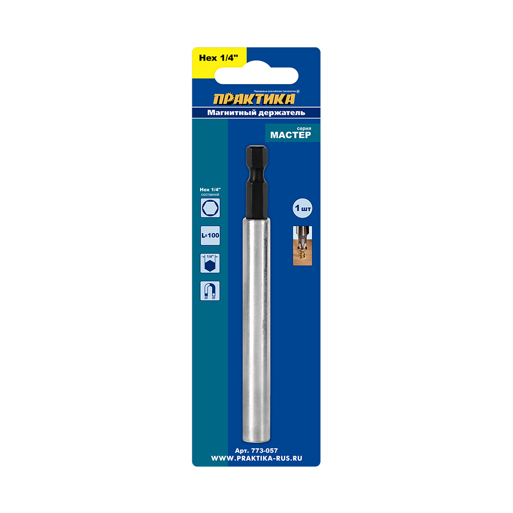 Удлинитель ПРАКТИКА магнитный держатель 100мм для бит 1/4" составной, (1шт), блистер (773-057) - цена, фото, технические характеристики