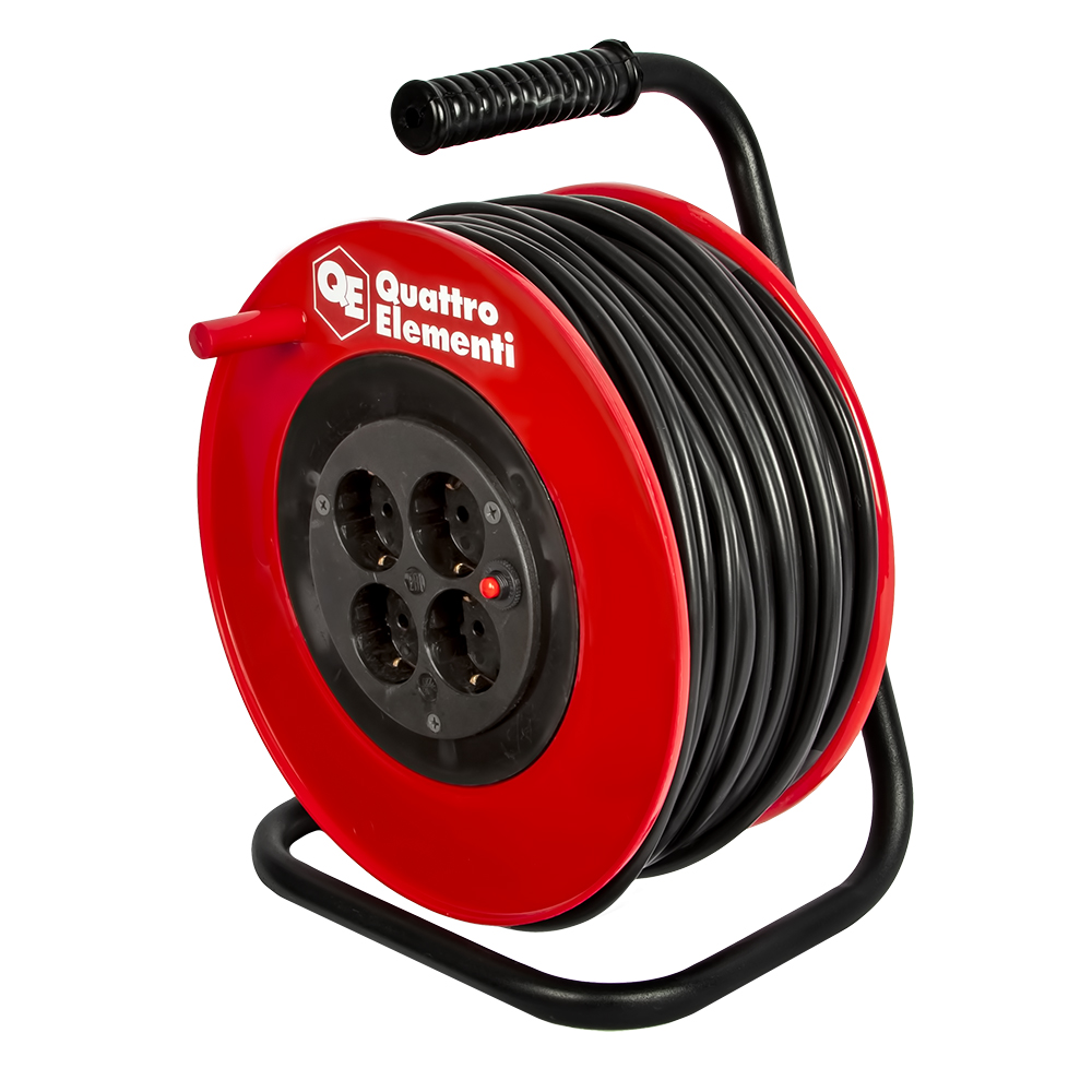 Удлинитель силовой QUATTRO ELEMENTI УХз16-004 - 60 м, провод ПВС 3х1,5 мм2, 4 роз. 16А 220В, автомат защиты, катушка пластик (491-134) - цена, фото, технические характеристики