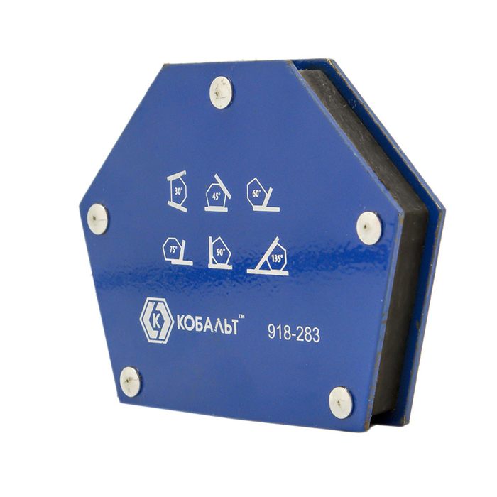 Угольник магнитный КОБАЛЬТ 115 х 90 мм, на 6 углов: 30, 45, 60, 75, 90, 135 градусов, магнит до 22 кг., блистер (918-283)