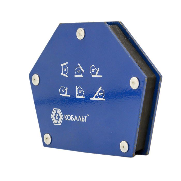 Угольник магнитный КОБАЛЬТ 145 х 110 мм, на 6 углов: 30, 45, 60, 75, 90, 135 градусов, магнит до 34 кг., блистер (918-290) - цена, фото, технические характеристики
