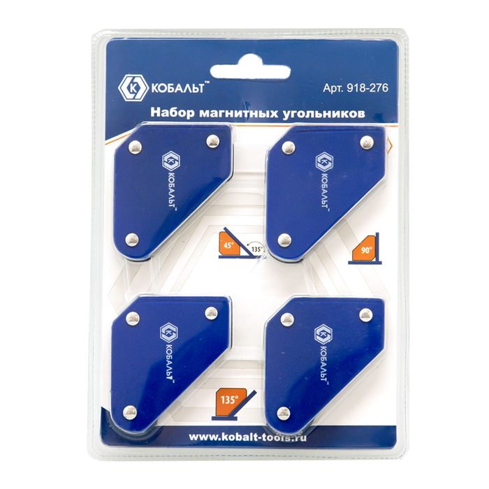 Угольник магнитный КОБАЛЬТ 58 х 50 мм, на 3 угла: 45, 90, 135 градусов, магнит до 4 кг, 4 шт./компл., блистер (918-276) - цена, фото, технические характеристики