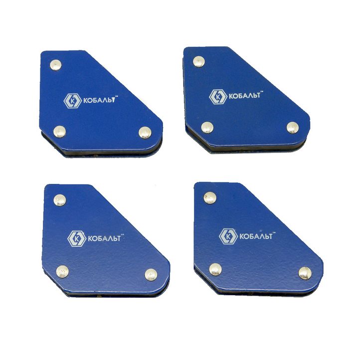 Угольник магнитный КОБАЛЬТ 58 х 50 мм, на 3 угла: 45, 90, 135 градусов, магнит до 4 кг, 4 шт./компл., блистер (918-276)