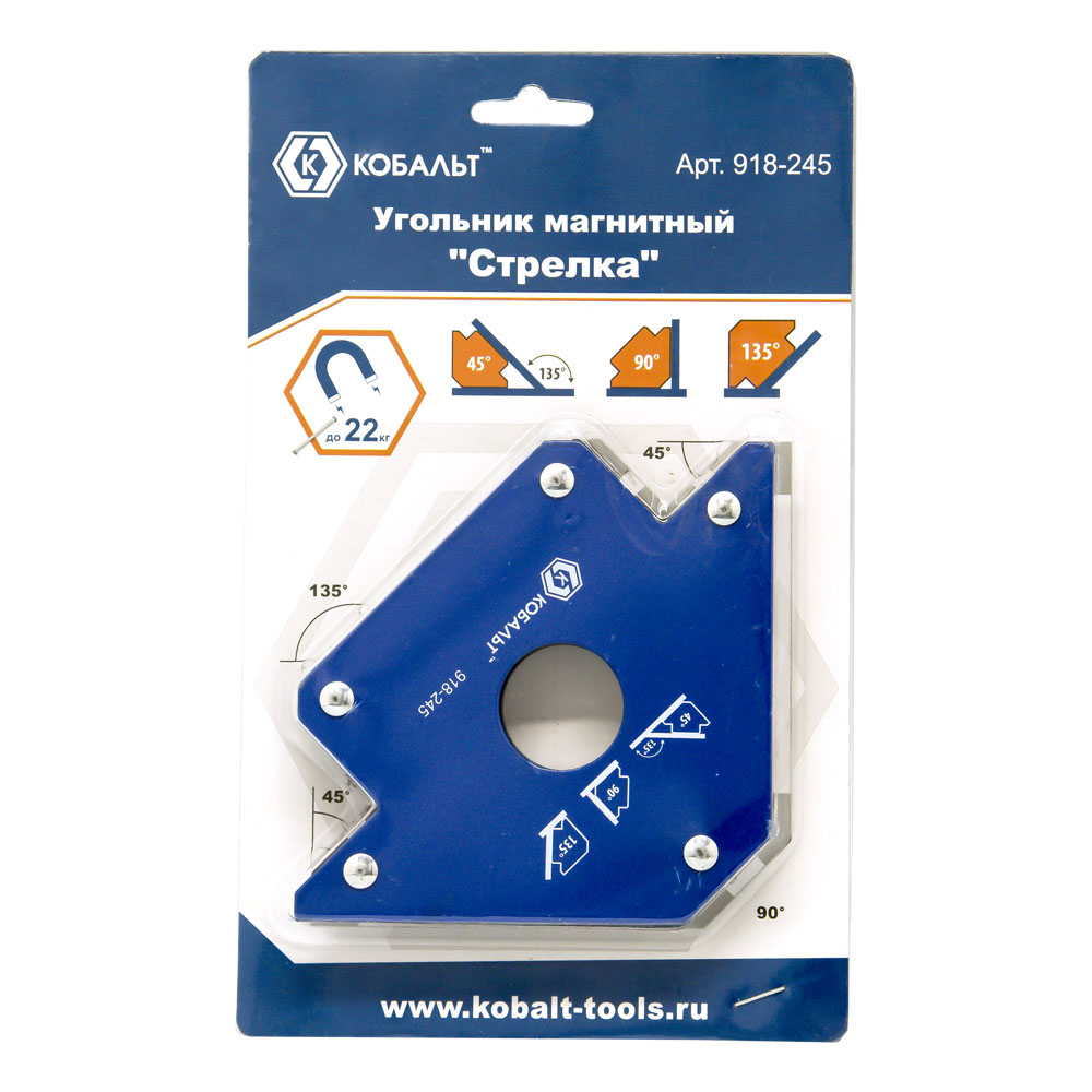 Угольник магнитный КОБАЛЬТ "Стрелка", 100 мм, на 3 угла: 45, 90, 135 градусов, магнит до 22 кг., блистер (918-245) - цена, фото, технические характеристики