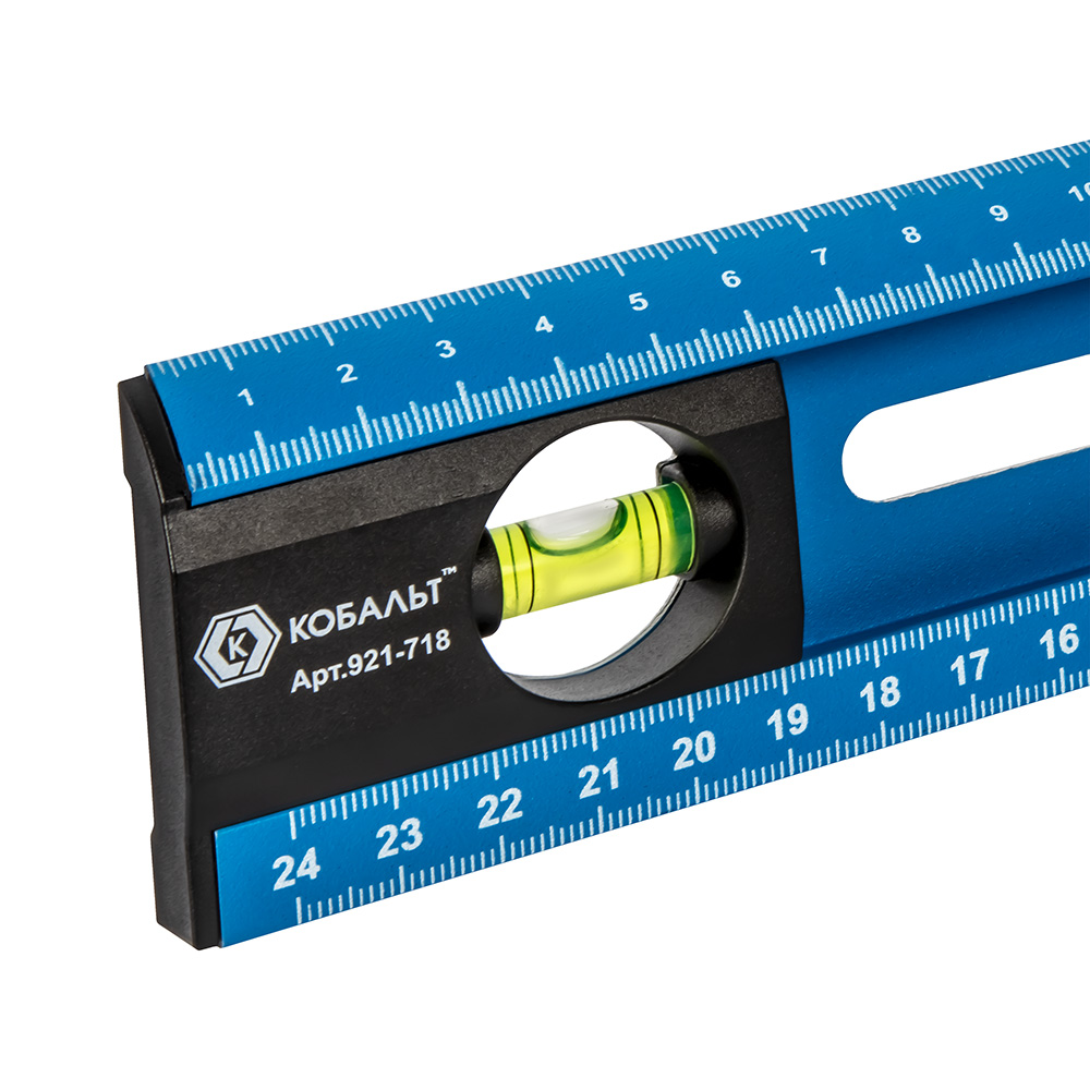 Уровень электрика КОБАЛЬТ 500 мм, W-обр. профиль, 2 глазка, линейка, шкала для разметки подрозетников 68 мм, точность 0.75 мм/м (921-718) - цена, фото, технические характеристики